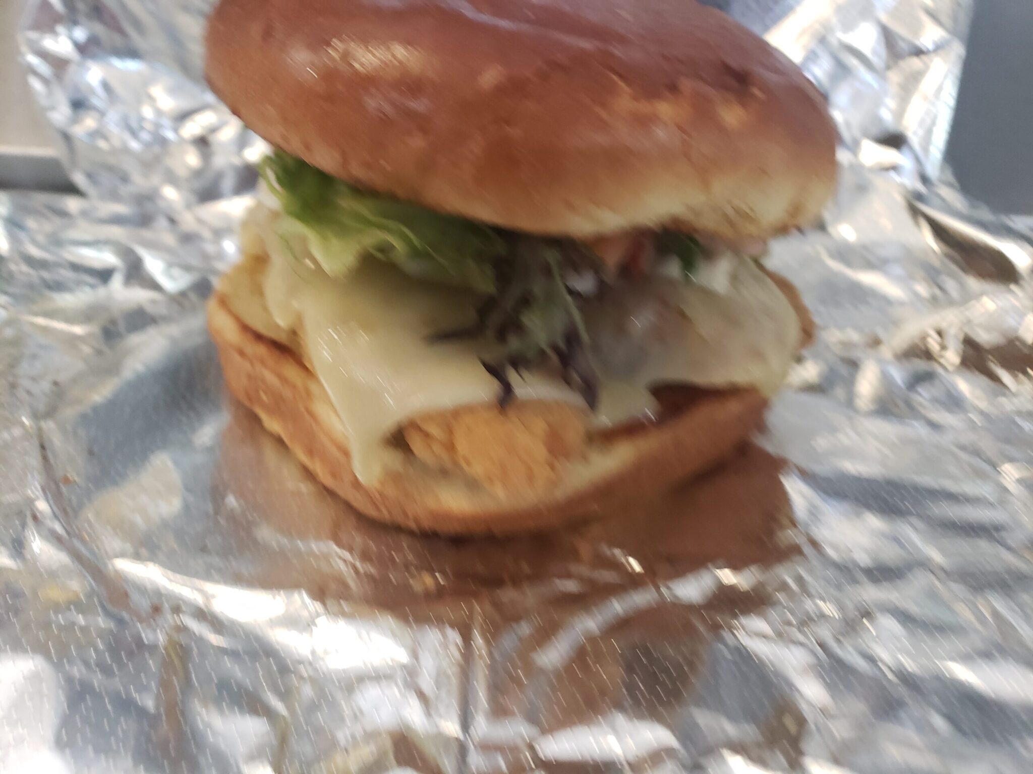 Two chicken strips, cheese, Lettuce, tomato.